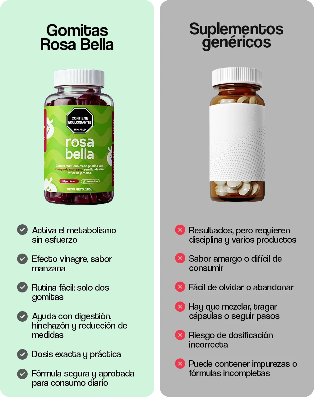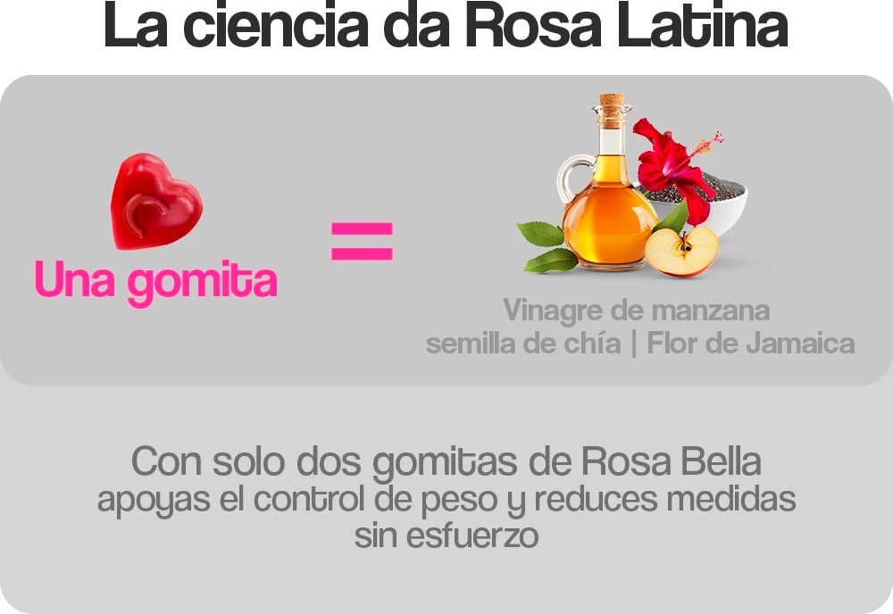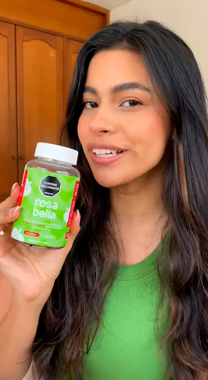 Rosa Bella es tu aliada para despedirte de la hinchazón, la pesadez después de las comidas y el malestar abdominal que tanto incomoda. Con solo 2 gomitas al día, apoyas a tu cuerpo con ingredientes naturales que favorecen la digestión, equilibran tu organismo y devuelven la sensación de ligereza — sin excusas, sin complicaciones.