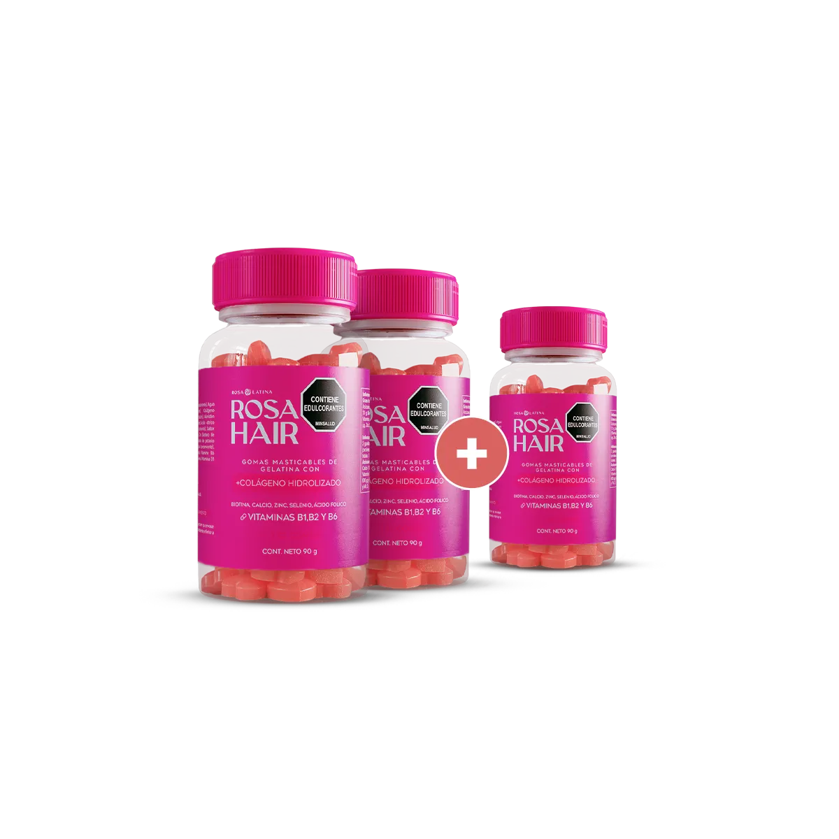 Rosa Hair contiene colágeno hidrolizado y biotina, esenciales para la salud capilar, además de vitaminas que mejoran la calidad de la piel y fortalecen las uñas. No necesitas múltiples suplementos: con Rosa Hair, tienes todo lo que necesitas en una sola gomita deliciosa y práctica.